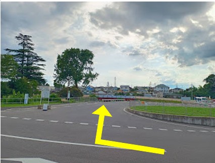 ②第1駐車場内「バス専用」標記のコーンの内側(橋を渡って第1駐車場に入った右手側)