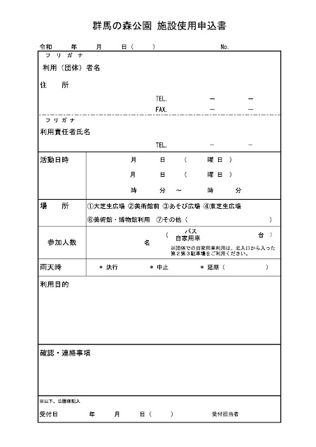 下記の「施設使用申込書」にご記入後に持参かFAX、または同内容をお電話でご連絡をお願いいたします。