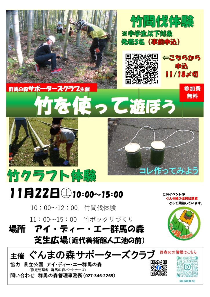 群馬の森サポーターズクラブがお贈りします「竹を使って遊ぼう」に遊びに来てね!