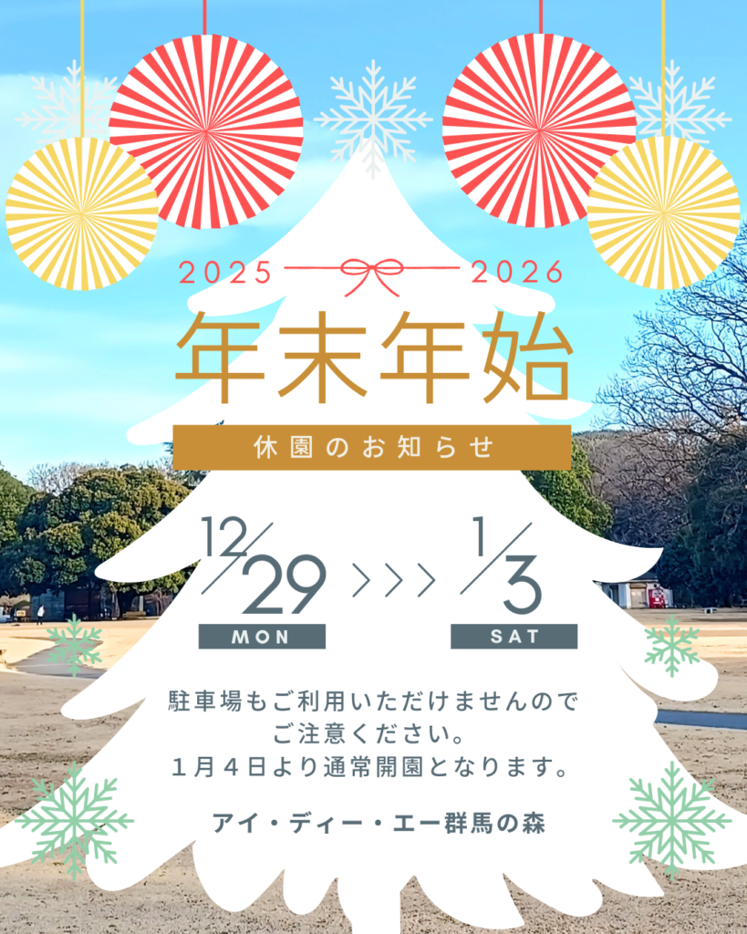 2025年12月29日~2026年1月3日まで休園となります。